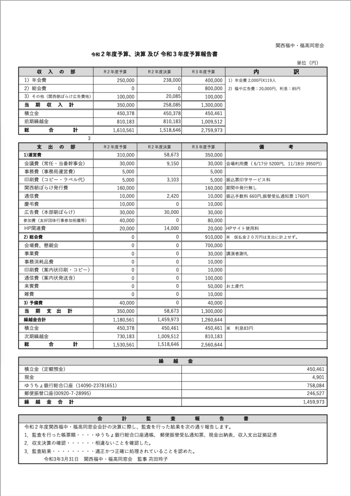 令和2年度決算及び令和3年度予算報告書