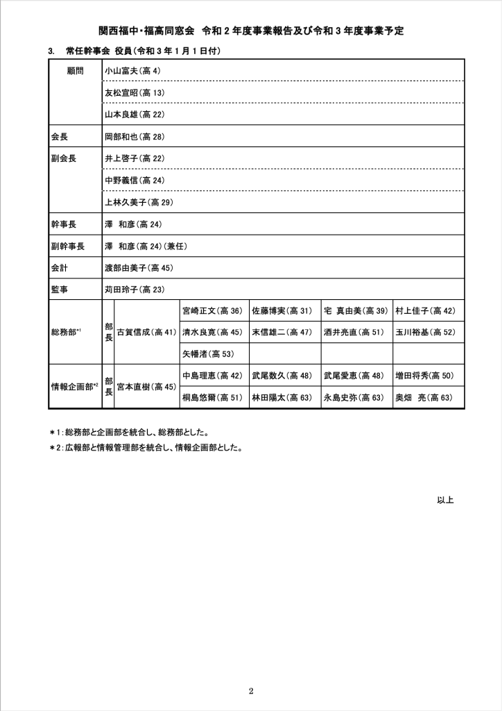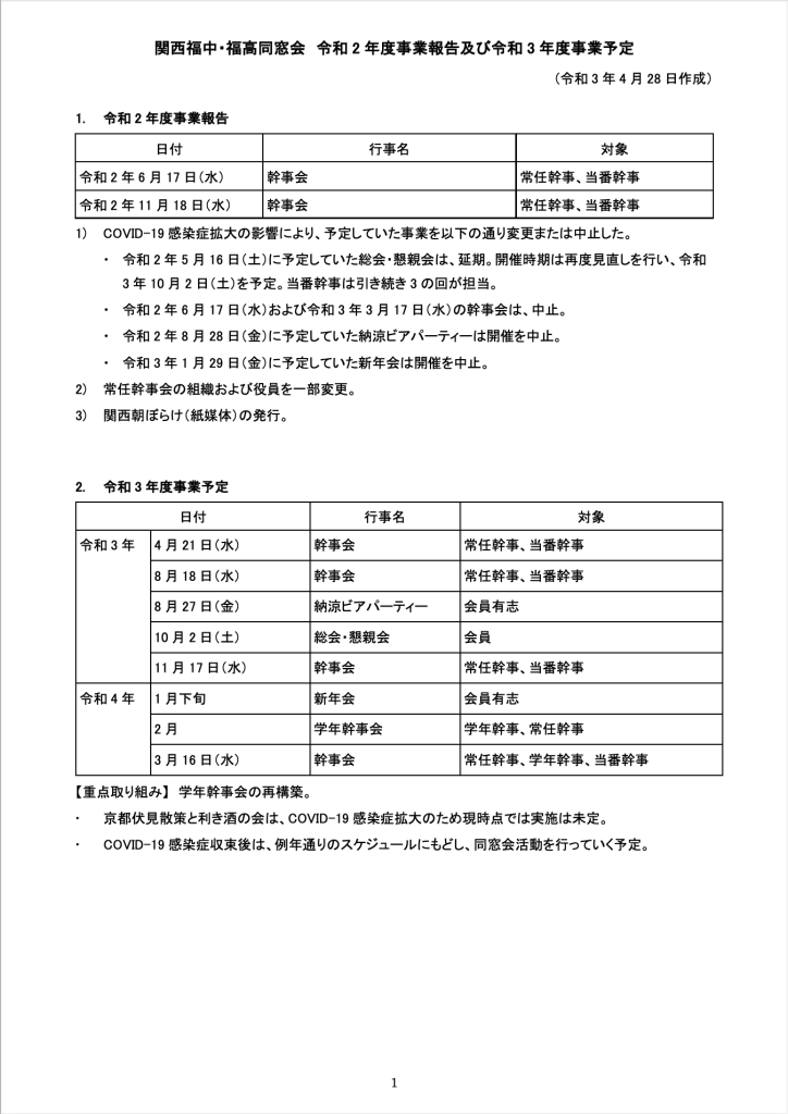令和2年度事業報告及び令和3年度事業予定